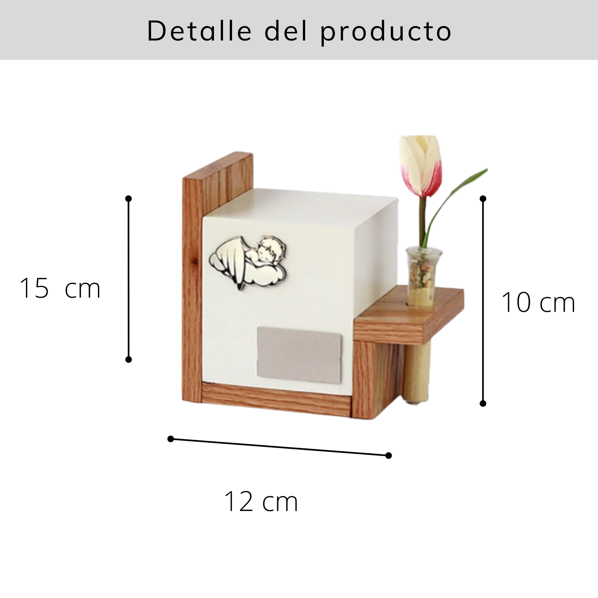 Descubre nuestra hermosa urna funeraria para cenizas, diseñada con una estética que resalta la belleza natural. Fabricada con materiales de alta calidad, esta urna incluye una plaquita de metal sin costo adicional y cuenta con una garantía de 15 días.