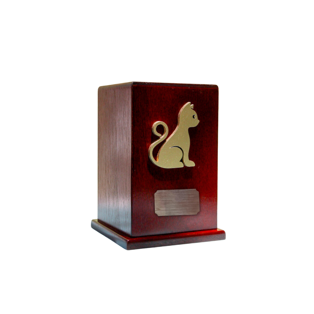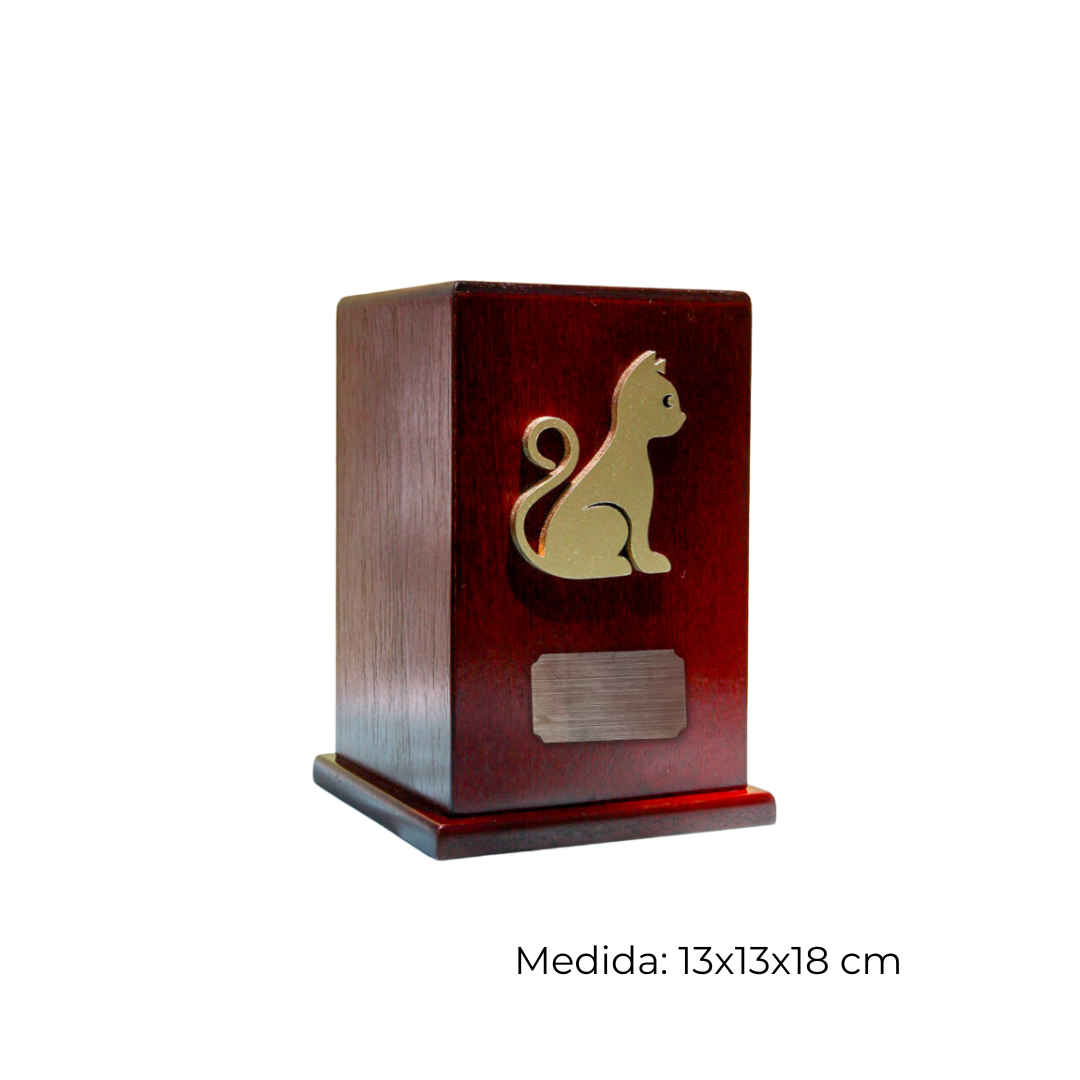 Fabricada con materiales de alta calidad y diseñada con líneas modernas y estilizadas, esta urna ofrece un tributo digno a tu compañero peludo. Su diseño único y contemporáneo la convierte en una pieza destacada que no solo alberga las cenizas de tu mascota, sino que también celebra su vida y legado de una manera significativa.