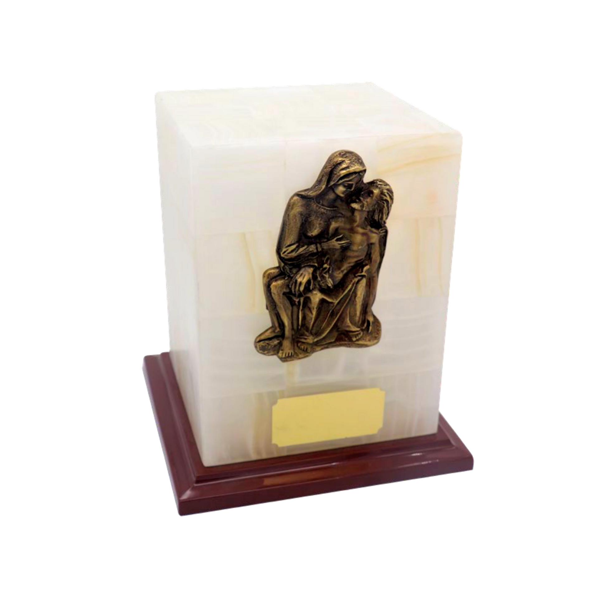 Urna Funeraria de Ónix y Madera de Cedro Artesanal una obra maestra de elegancia y durabilidad, nuestra urna combina la belleza del Ónix de primera calidad con la calidez de la madera de Cedro.