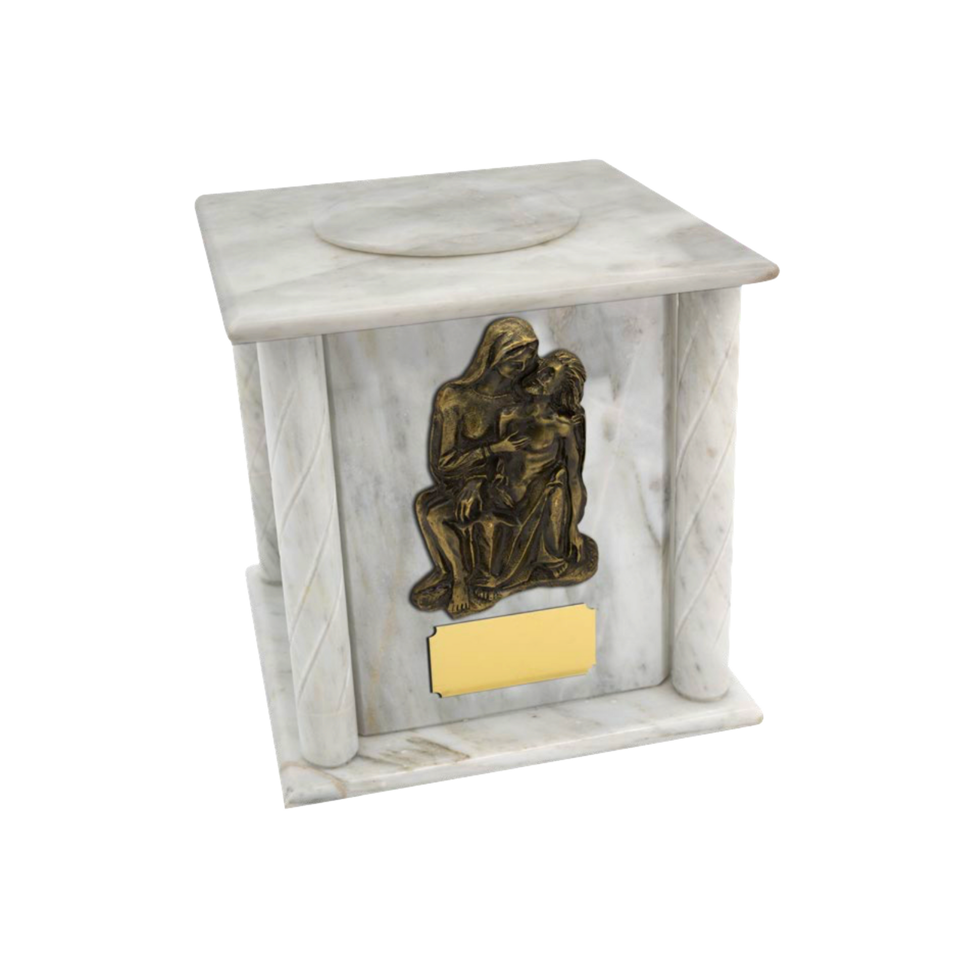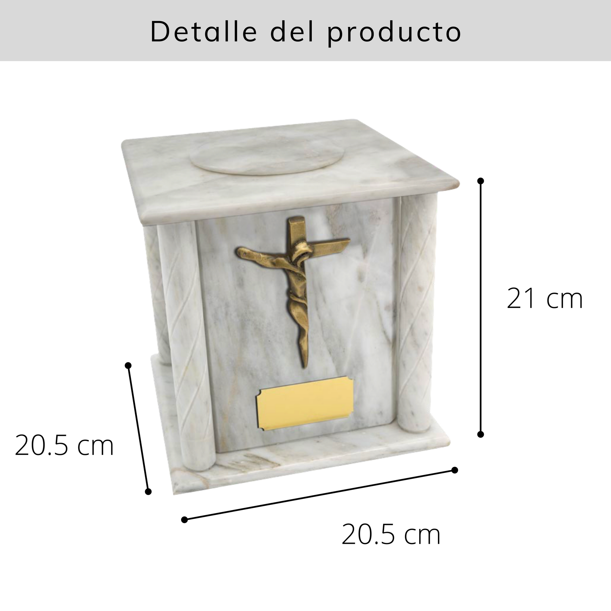 Para adquirir la plaquita personalizada, es importante agregarla al carrito junto con la urna. Celebra la vida de tus seres queridos con esta magnífica urna de Mármol Blanco.