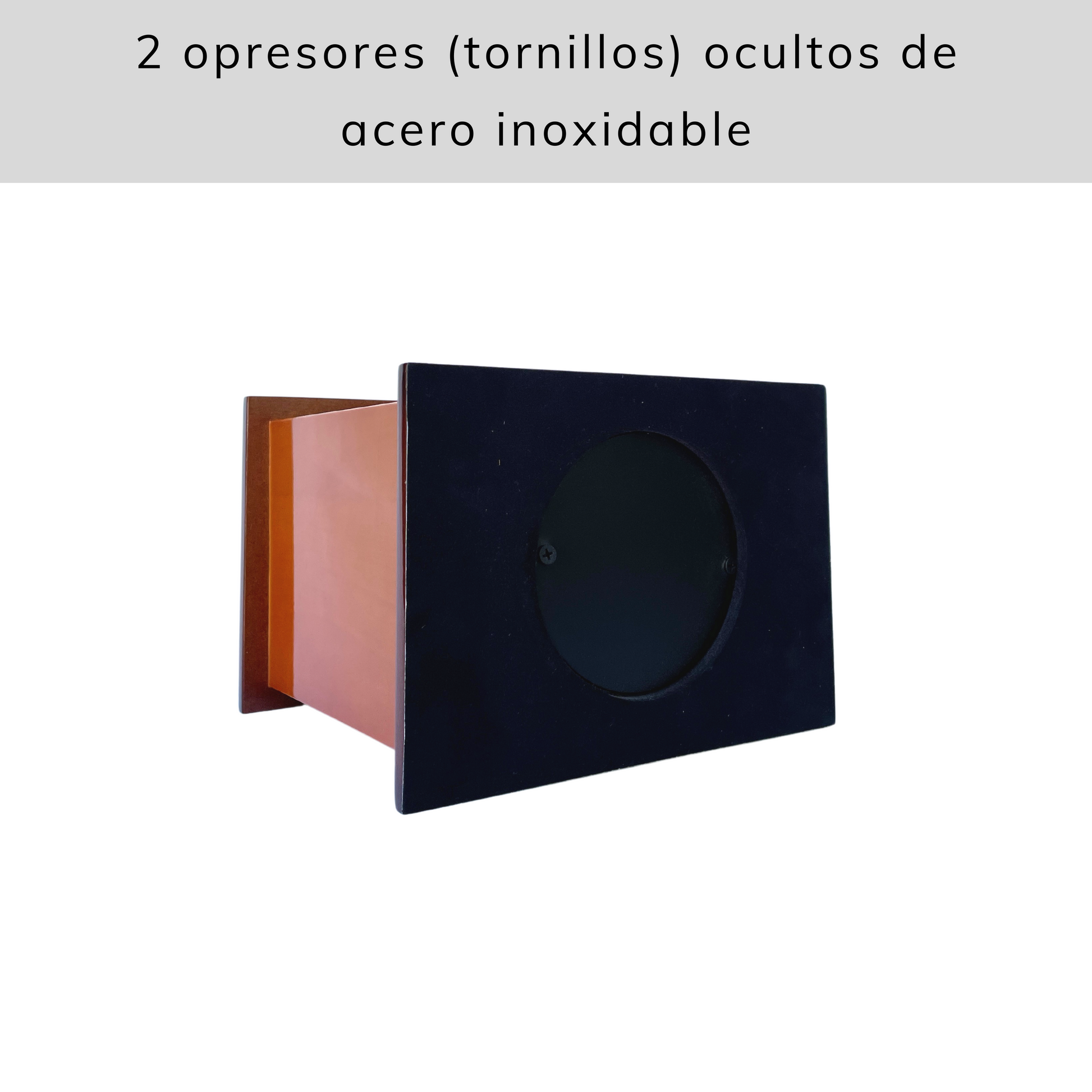 Con medidas de 16.5 cm de ancho x 22.5 cm de largo x 22.5 cm de alto, esta urna está diseñada para perdurar en el tiempo. Incluye dos opresores tornillos ocultos de acero inoxidable para un cierre seguro, así como una plaquita de metal y un saco para cenizas de cortesía.