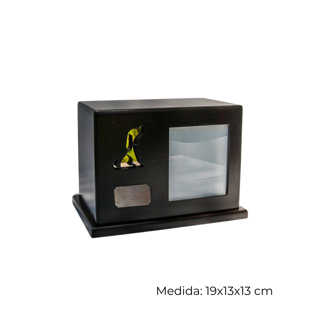 Con dimensiones de [proporcionar las medidas del producto], la Urna Memorial ofrece un espacio adecuado para conservar las cenizas de tu mascota, permitiéndote mantener su recuerdo cerca de ti con dignidad y respeto. Su diseño discreto y sobrio la convierte en un tributo discreto pero significativo a la vida y el amor compartidos.